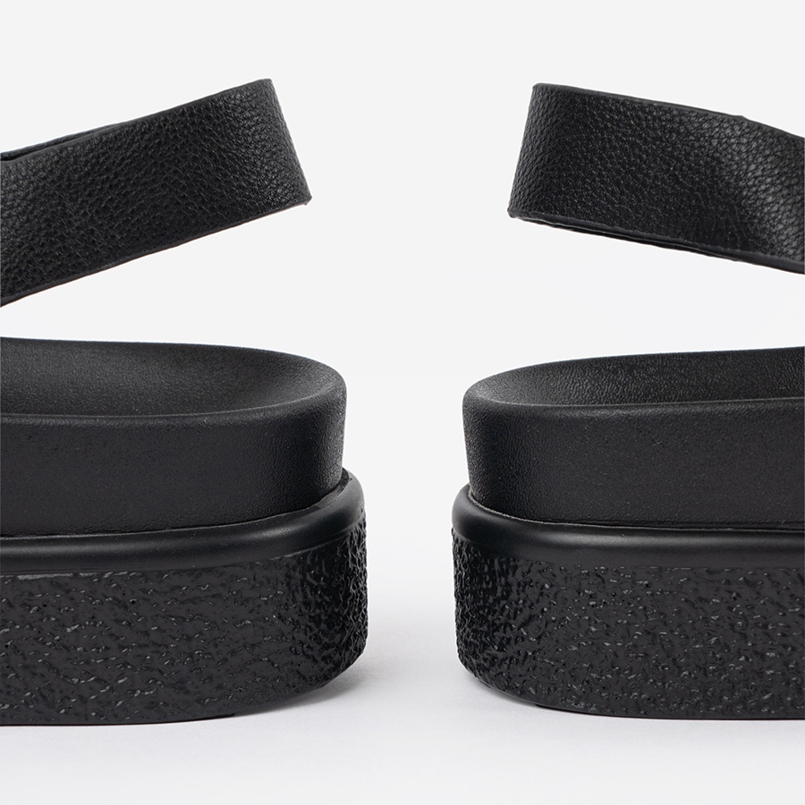 La coupe classique de sandales noires en fait un complément parfait à divers styles - à la fois des robes élégantes et des ensembles décontractés avec un jean. Grâce à la fixation fonctionnelle sur la boucle, vous pouvez facilement les ajuster à votre pied, vous garantir le bon support.