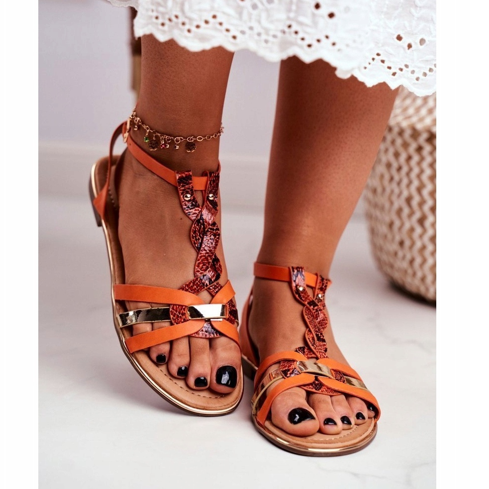 Nous vous présentons les sandales orange élégantes pour femmes - le complément parfait à votre garde-robe d'été ! Ces sandales élégantes se distinguent par un motif peau de serpent tendance qui leur confère un caractère unique. Fabriqués en cuir écologique de haute qualité, ils assurent un confort de port tout au long de la journée, tout en respectant l'environnement.