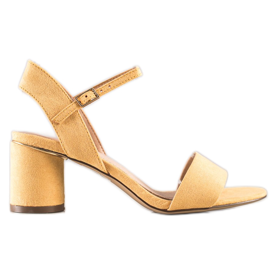 Découvrez les élégantes sandales à talons hauts EVENTO en jaune clair, qui reflètent parfaitement l'ambiance joyeuse des journées d'été ! Ces chaussures élégantes sont le choix parfait pour les femmes qui souhaitent allier confort et look tendance. Grâce à la hauteur du talon de 7 cm, les sandales offrent une silhouette optimale, sans sacrifier le confort offert par les chaussures à talons hauts.