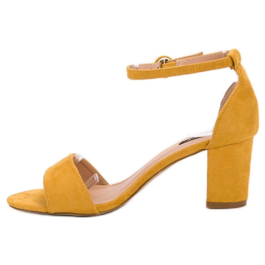 Les sandales VICES élégantes en jaune sont le choix parfait pour toutes les femmes à la mode qui souhaitent ajouter un peu de charme ensoleillé à leur garde-robe d'été. Ces chaussures élégantes, fabriquées en cuir suédé écologique de haute qualité, offrent non seulement une apparence attrayante, mais aussi le confort dont vous avez besoin lors des journées chaudes.