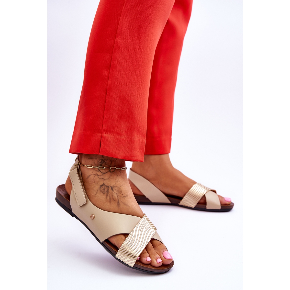 Détails: Lemar Sandales en cuir à scratch Addison dorées et beiges