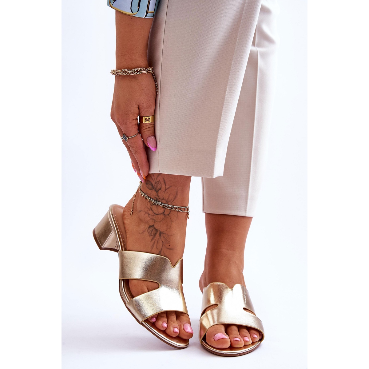 Détails: FJ1 Sandales en cuir à talons bas classiques Golden Miley doré