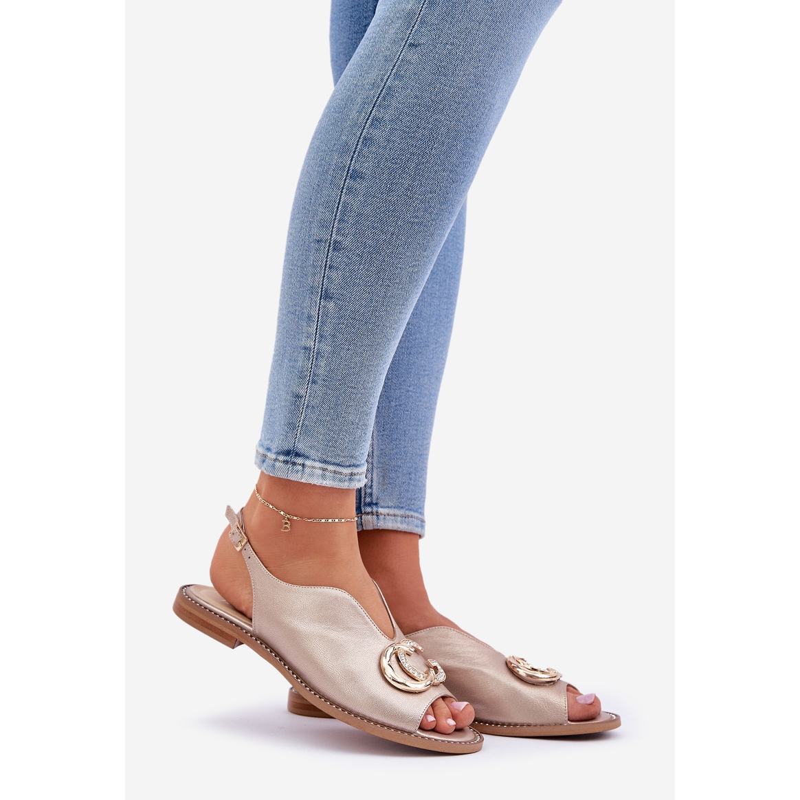 Détails: Sandales en cuir à tarif plates avec la décoration de Laura Messi 2865 Zlotys d'or