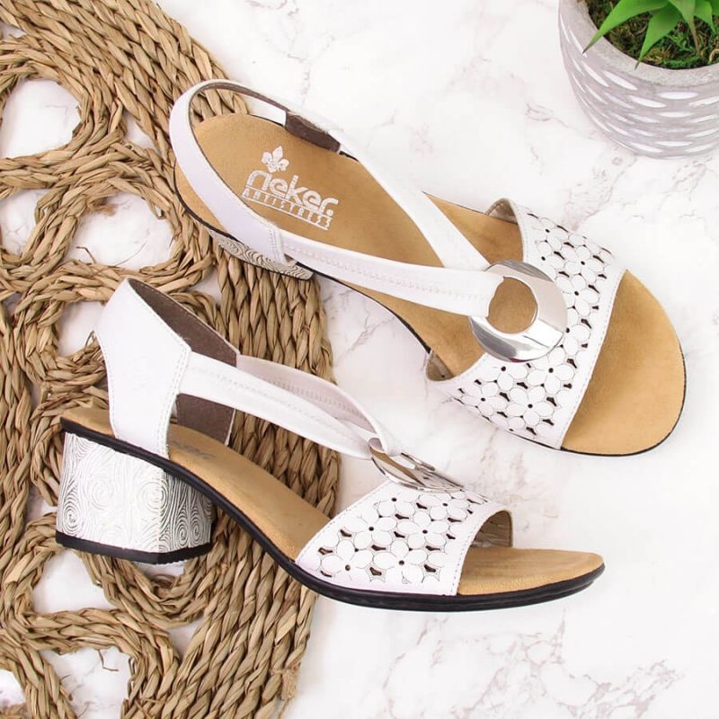 Détails: Sandales en cuir avec caoutchouc Rieker W RKR433 blanc blanche