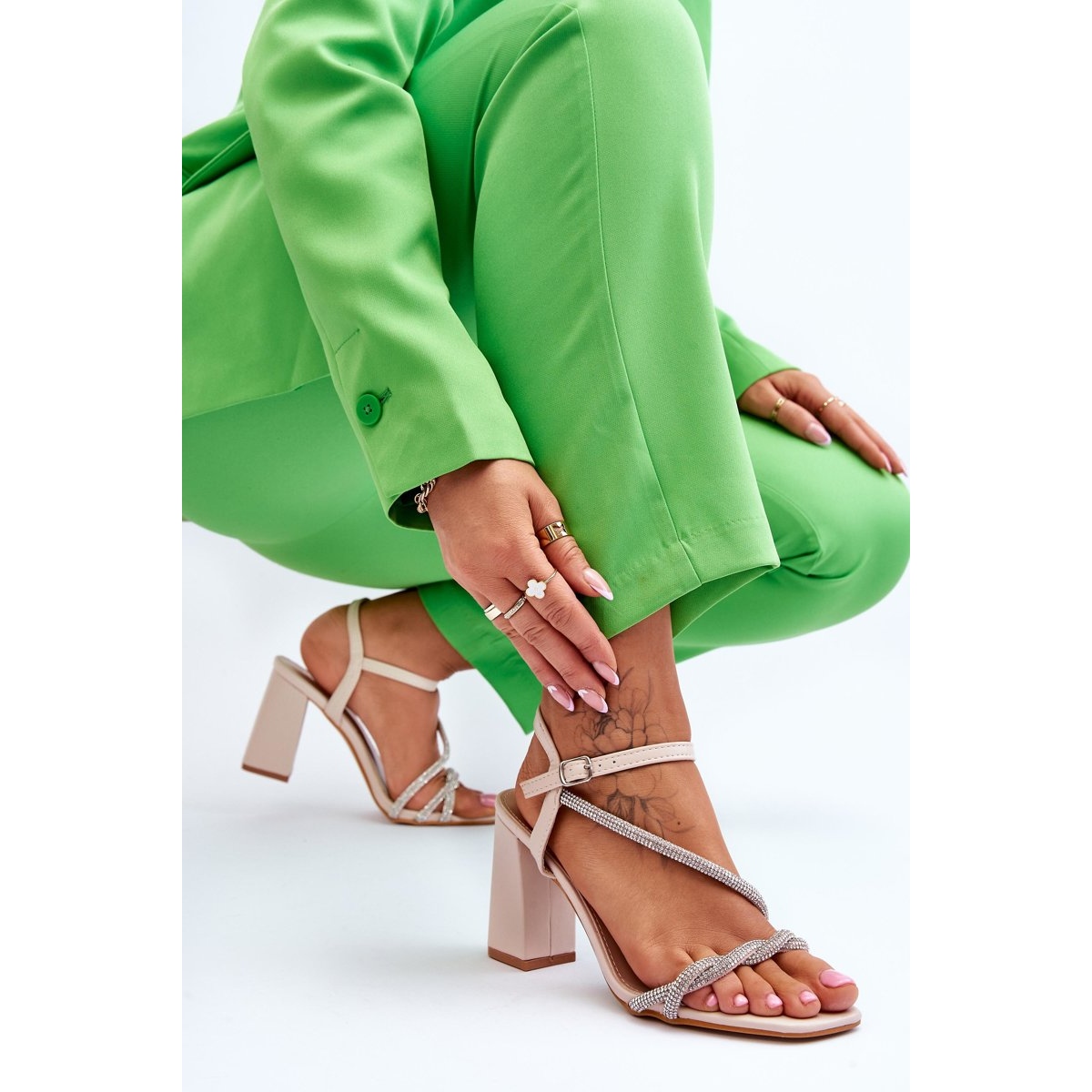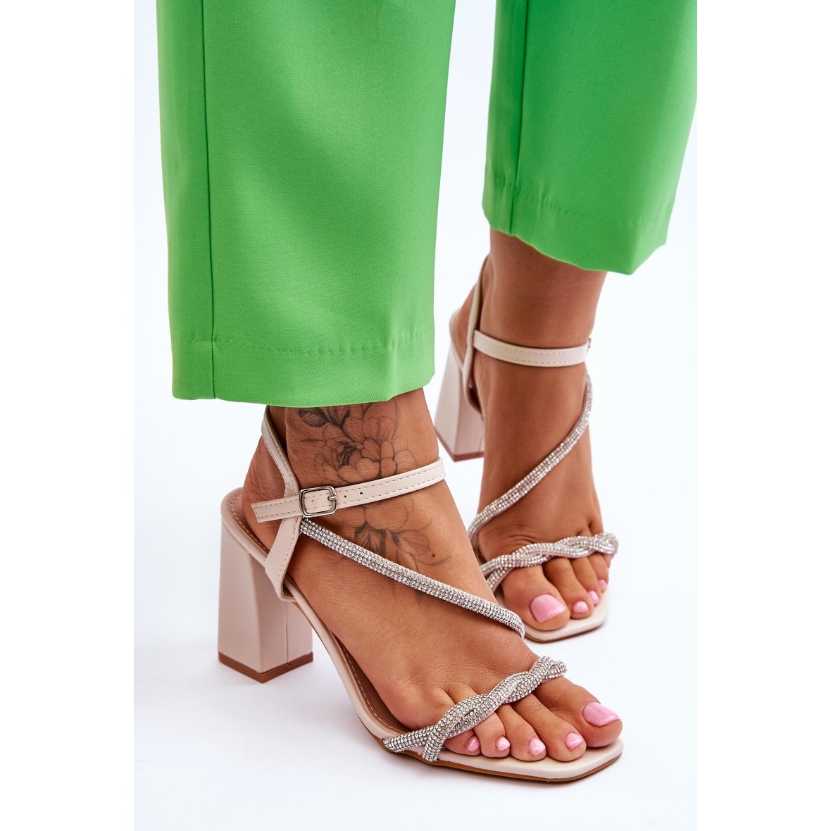 Détails: Sandales En Cuir Avec Strass Talons Beiges Carlotta brun