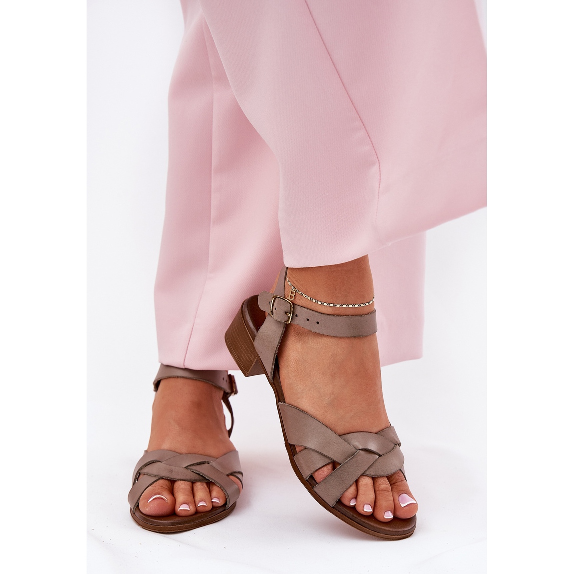 Détails: Sandales en cuir avec un délicat zazoo 40372 Dark-Abearing beige