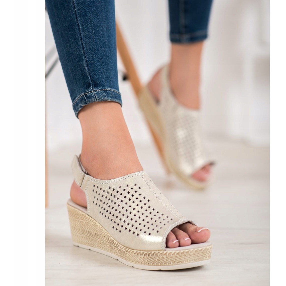 Le modèle se caractérise par une brillance subtile et un motif ajouré qui ajoute légèreté et originalité. Le talon ouvert et l'absence de bout rendent les sandales non seulement élégantes, mais aussi très confortables. De plus, la hauteur du talon de 6 cm assure une hauteur optimale, tout en ajoutant de l'élégance à n'importe quel style.