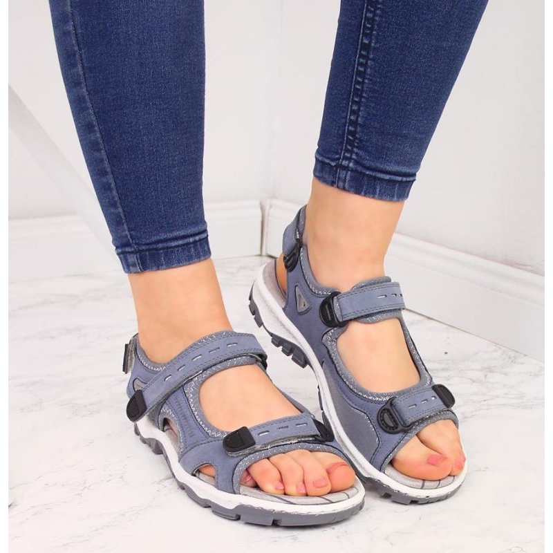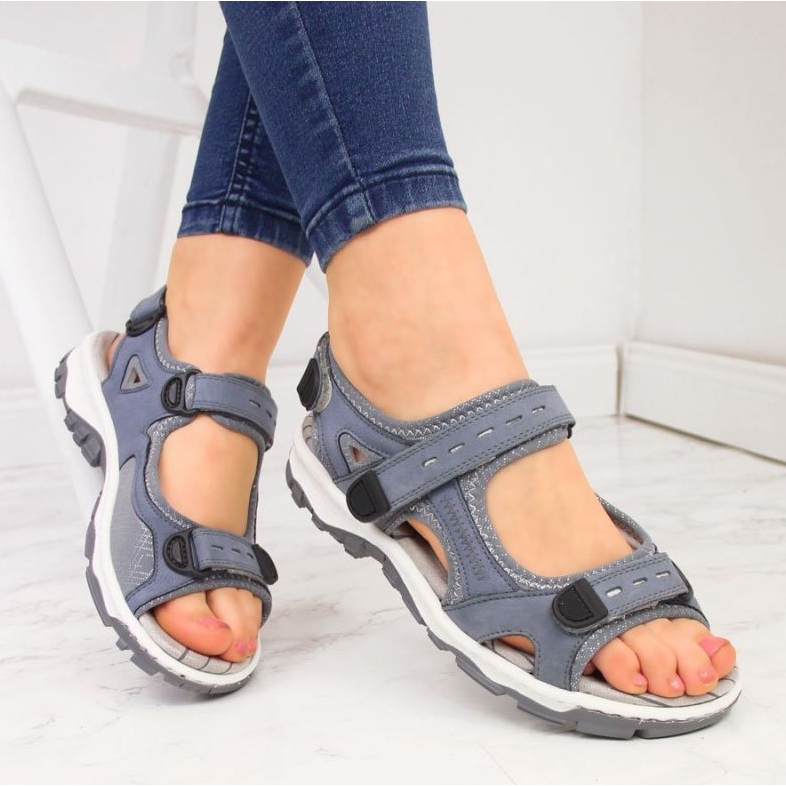 Détails: Sandales en cuir avec velcro Rieker W RKR458 bleu