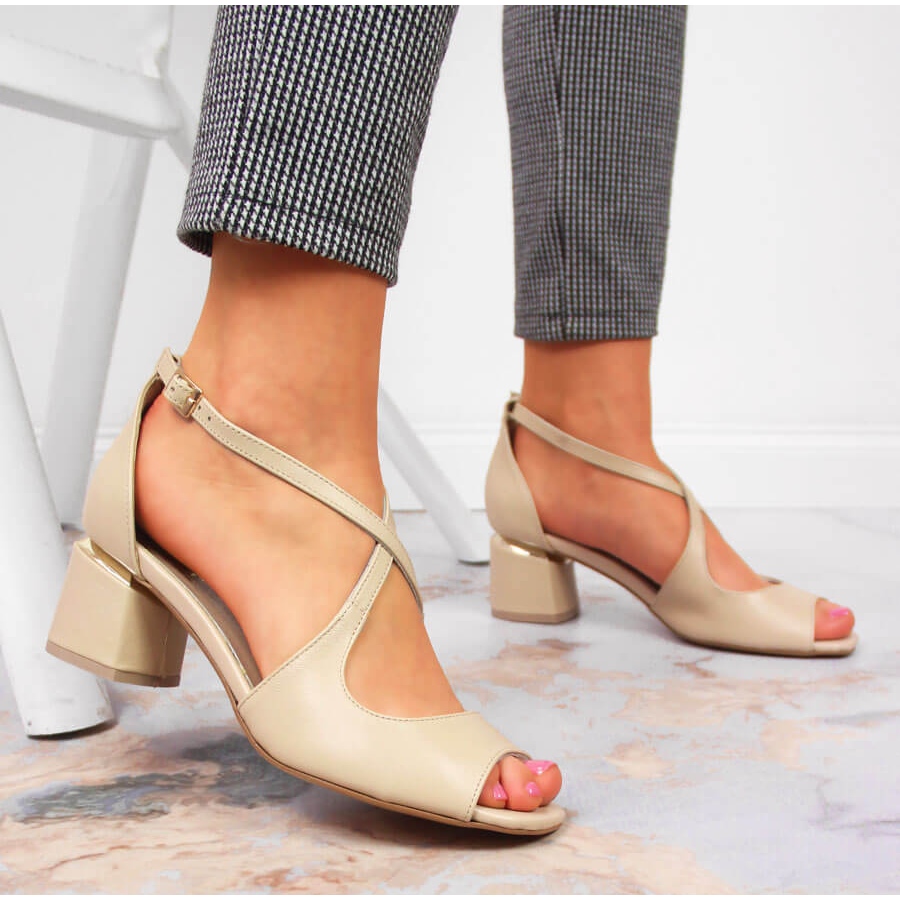 Détails: Sandales en cuir beige pour femmes à talons hauts Juma