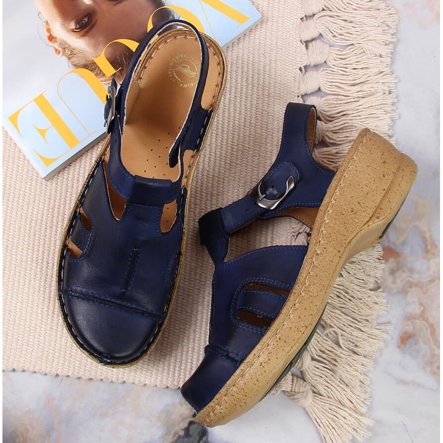 Découvrez sept raisons pour lesquelles il vaut la peine d'acheter des sandales fermées en cuir Łukbut 656 bleu marine !