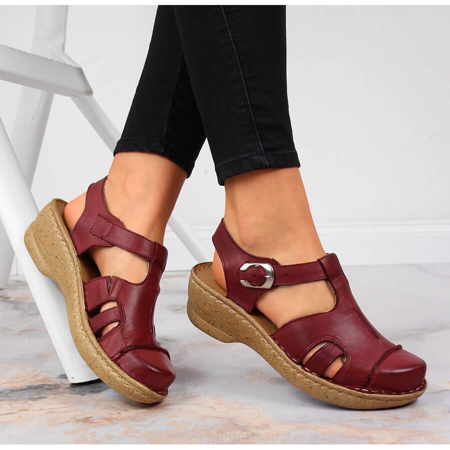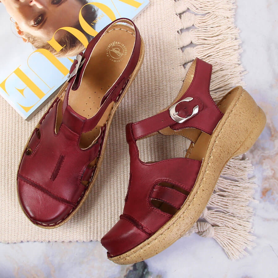 Les sandales fermées en cuir bordeaux Łukbut 656 sont le choix parfait pour les femmes qui apprécient le confort et l'élégance. Fabriquées entièrement en cuir naturel de haute qualité, ces belles sandales allient le design tendance au confort offert par la ligne TOTAL COMFORT. Grâce à une forme soignée et un amorti approprié, ce modèle est une solution parfaite pour les journées d'été.