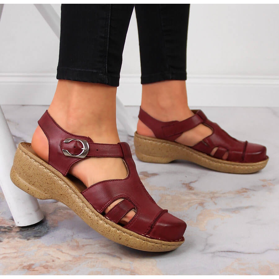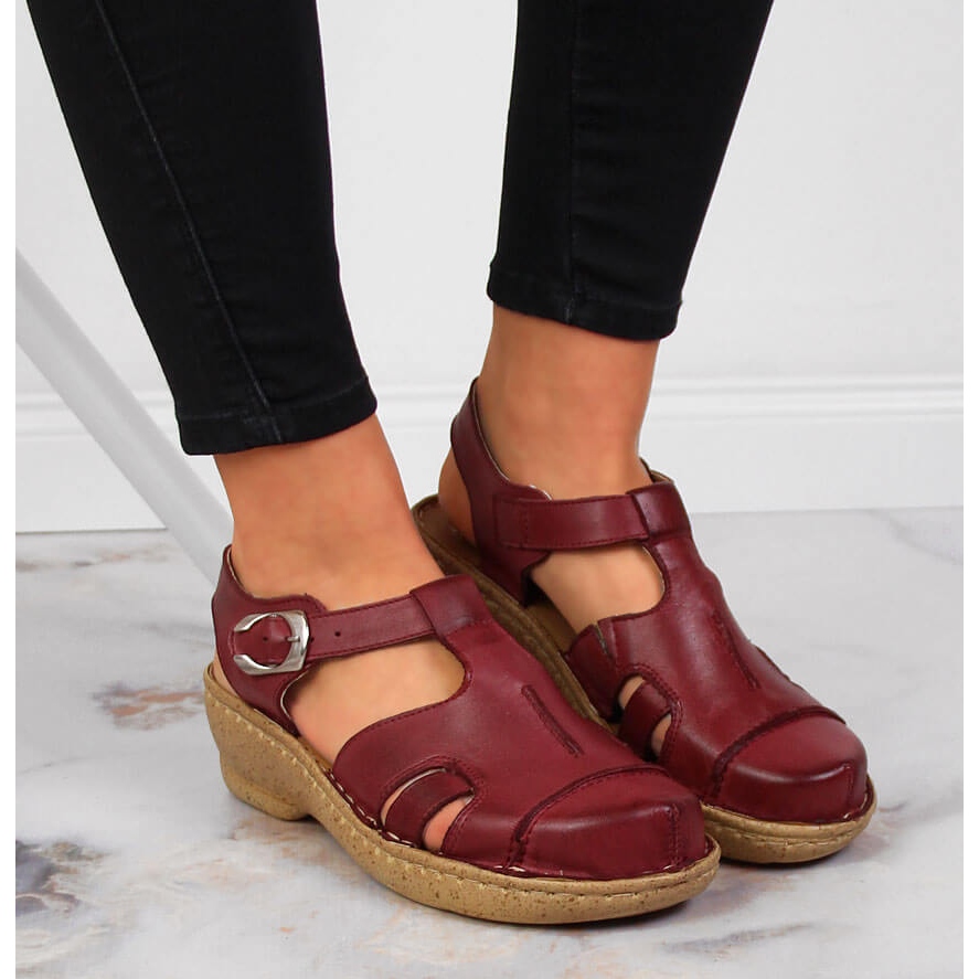 Détails: Sandales en cuir construites en bordeaux Łukbut 656 rouge