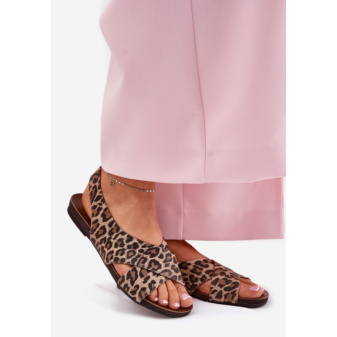 Zazoo Zazoo Sandales en cuir féminine léopard brun léopard beige