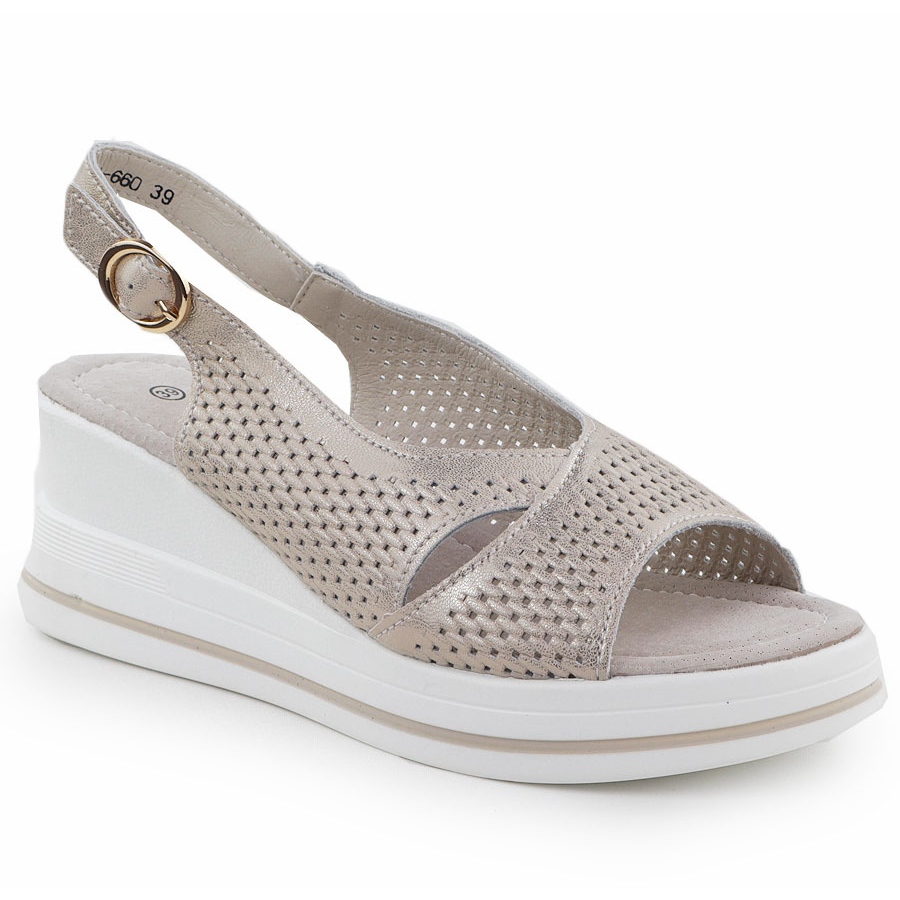 S.Barski S.Barski Sandales en cuir féminines ouvertes sur les cales de Złote S. Barski LR51-660 d'or