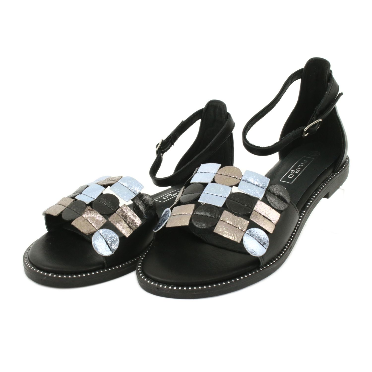 Découvrez des sandales uniques Filippo DS1286/20 MLT avec insert en cuir dans des tons tendance de noir, gris et jaune, qui seront le complément parfait au style estival de chaque femme. Ces sandales sont fabriquées dans un matériau synthétique moderne, ce qui garantit non seulement la durabilité mais aussi une apparence attrayante.