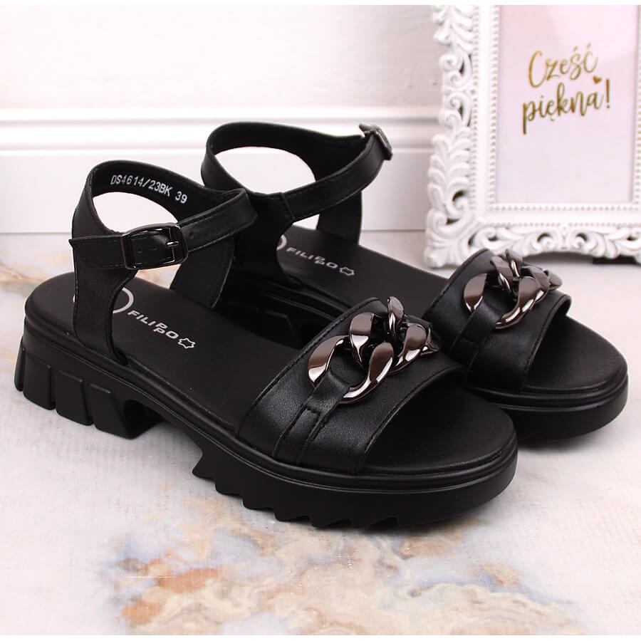 Détails: Sandales en cuir noir pour femmes avec une chaîne Filippo DS4614 le noir