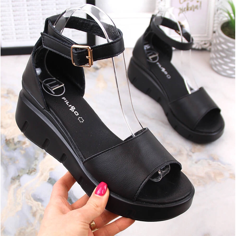 Détails: Sandales en cuir noir pour femmes Filippo DS4455 le noir