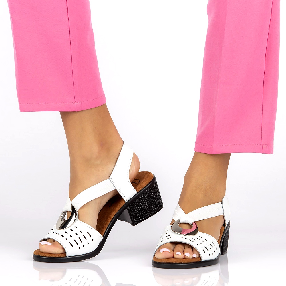 Sandales féminines élégantes et confortables qui combinent une coupe classique avec un motif de travail délicat et ouvert. Fabriqué en cuir naturel en blanc universel (blanc), ils sont parfaits pour les stylisations quotidiennes et plus formelles.