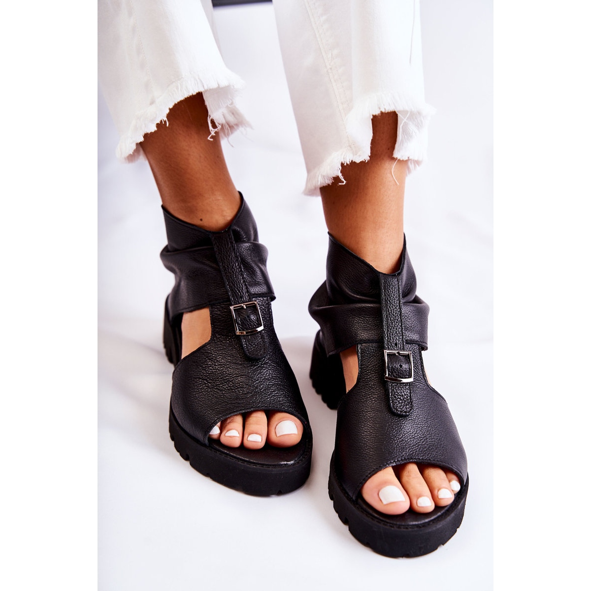 Détails: Sandales en cuir pour femmes avec fermeture éclair Nicole 2748 Noir