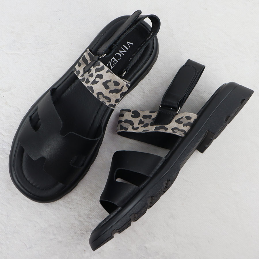 Vinceza Sandales en cuir pour femmes avec imprimé léopard Vinceza 66780 le noir