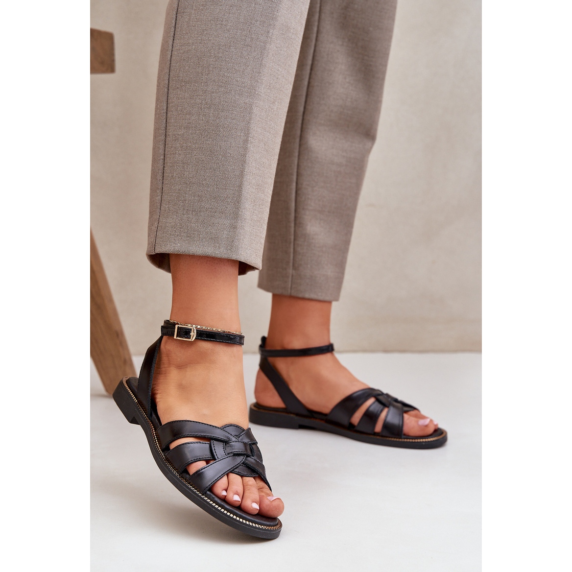 Détails: Sandales en cuir pour femmes avec talons plats zazoo 3688 noir le noir