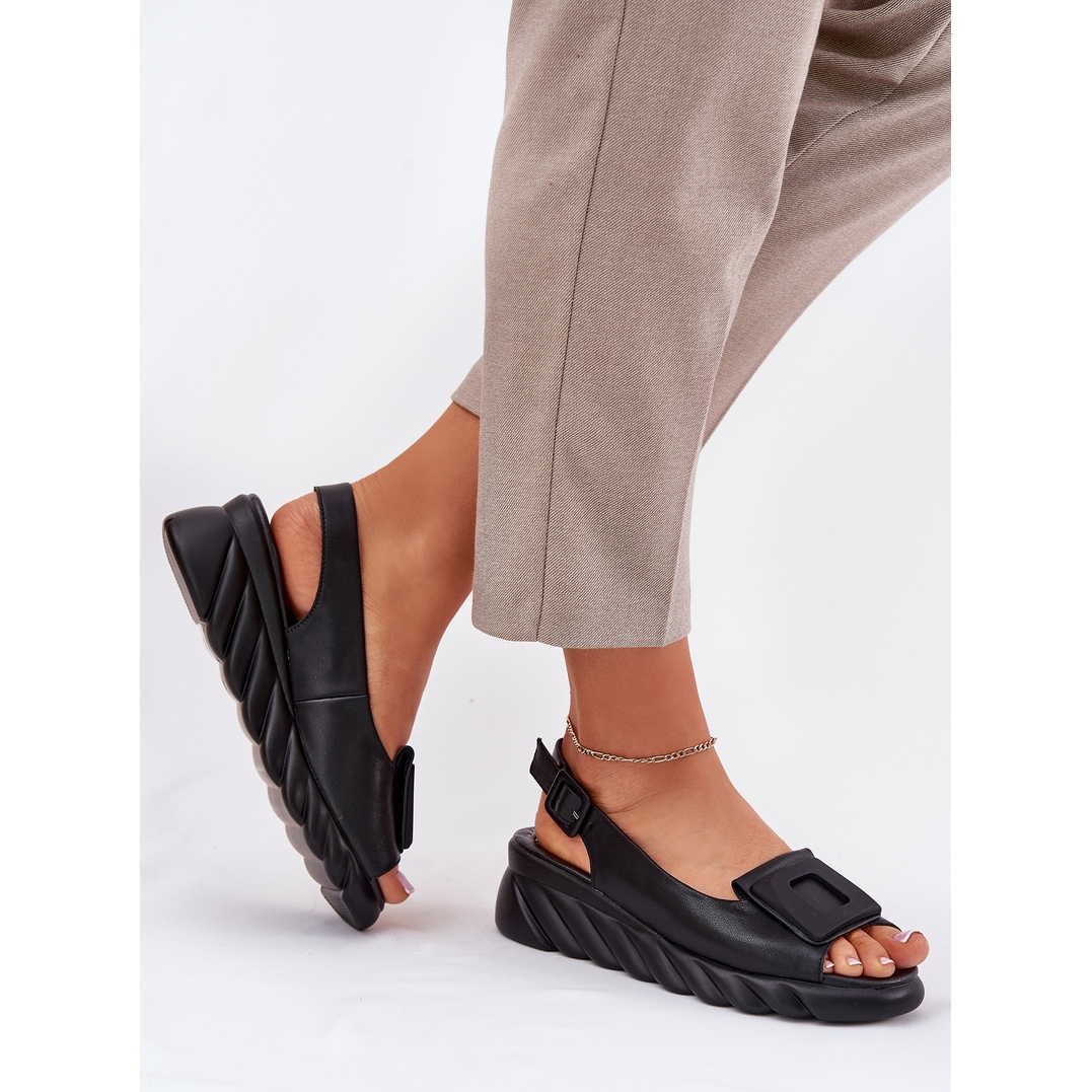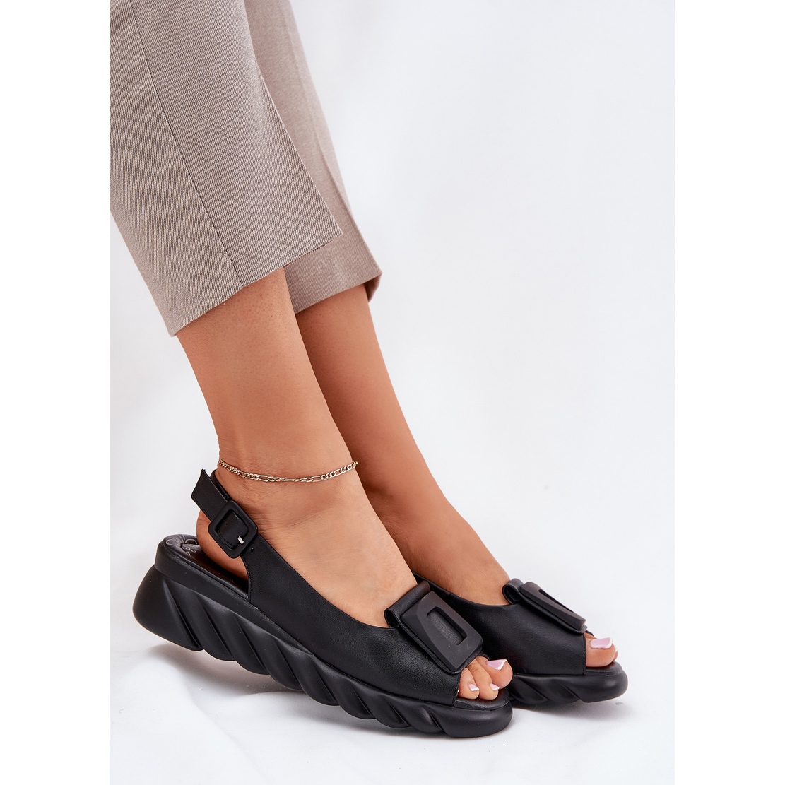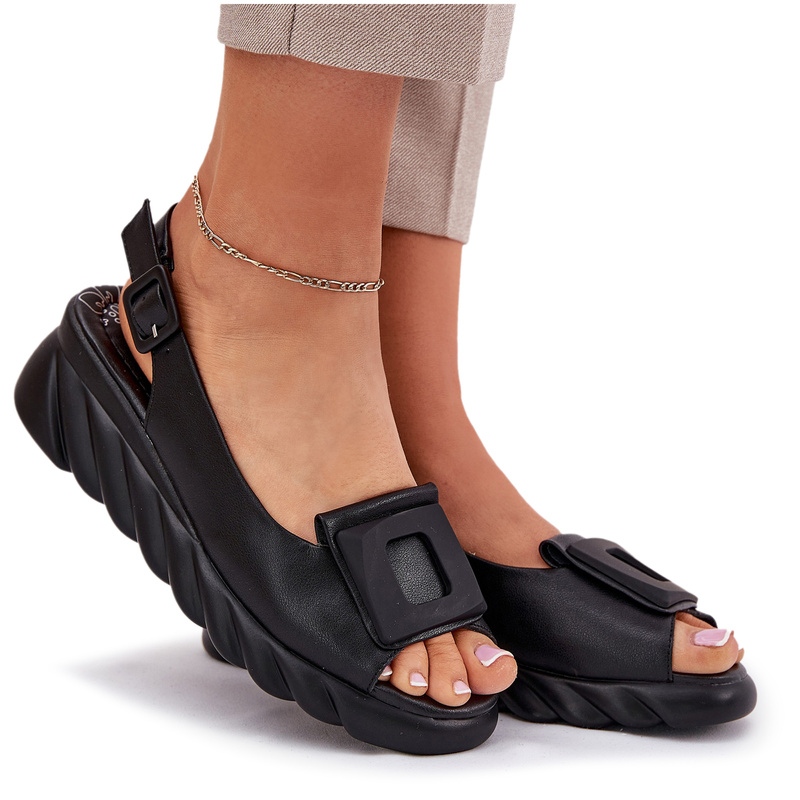 Détails: Sandales en cuir pour femmes avec un coin avec décoration artiker 56c2156 noir le noir