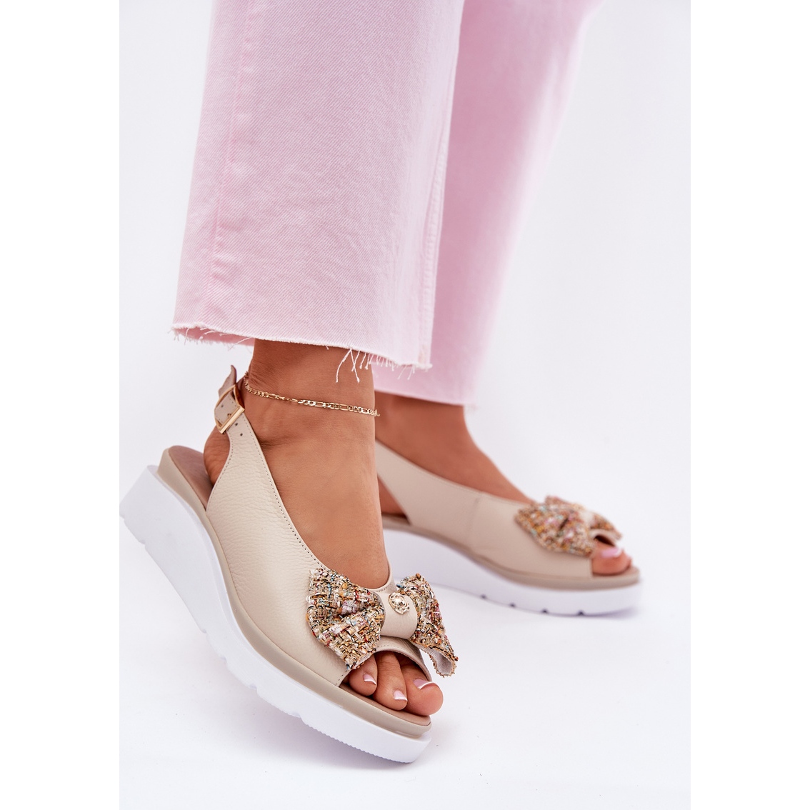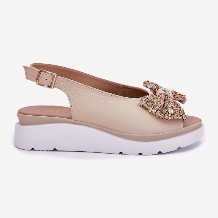 Détails: Sandales en cuir pour femmes avec un coin avec un arc beige zazoo 1882