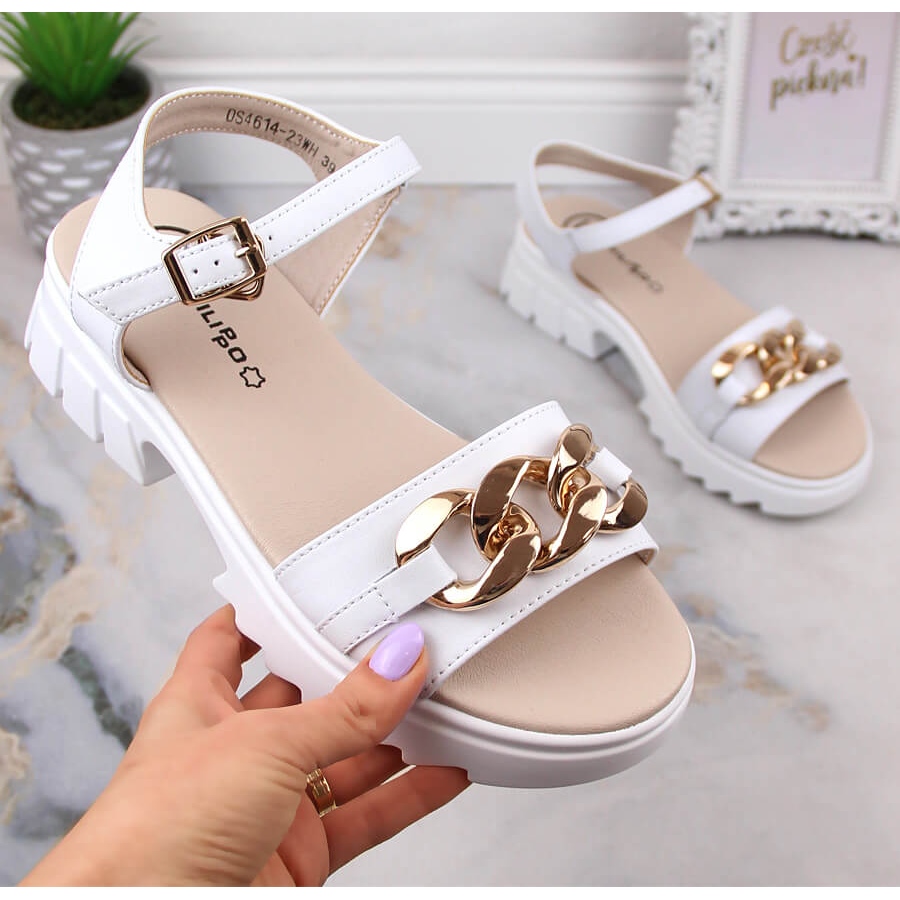 Elegance in Summer - Sandales en cuir avec chaîne pour femme, blanc Filippo DS4614