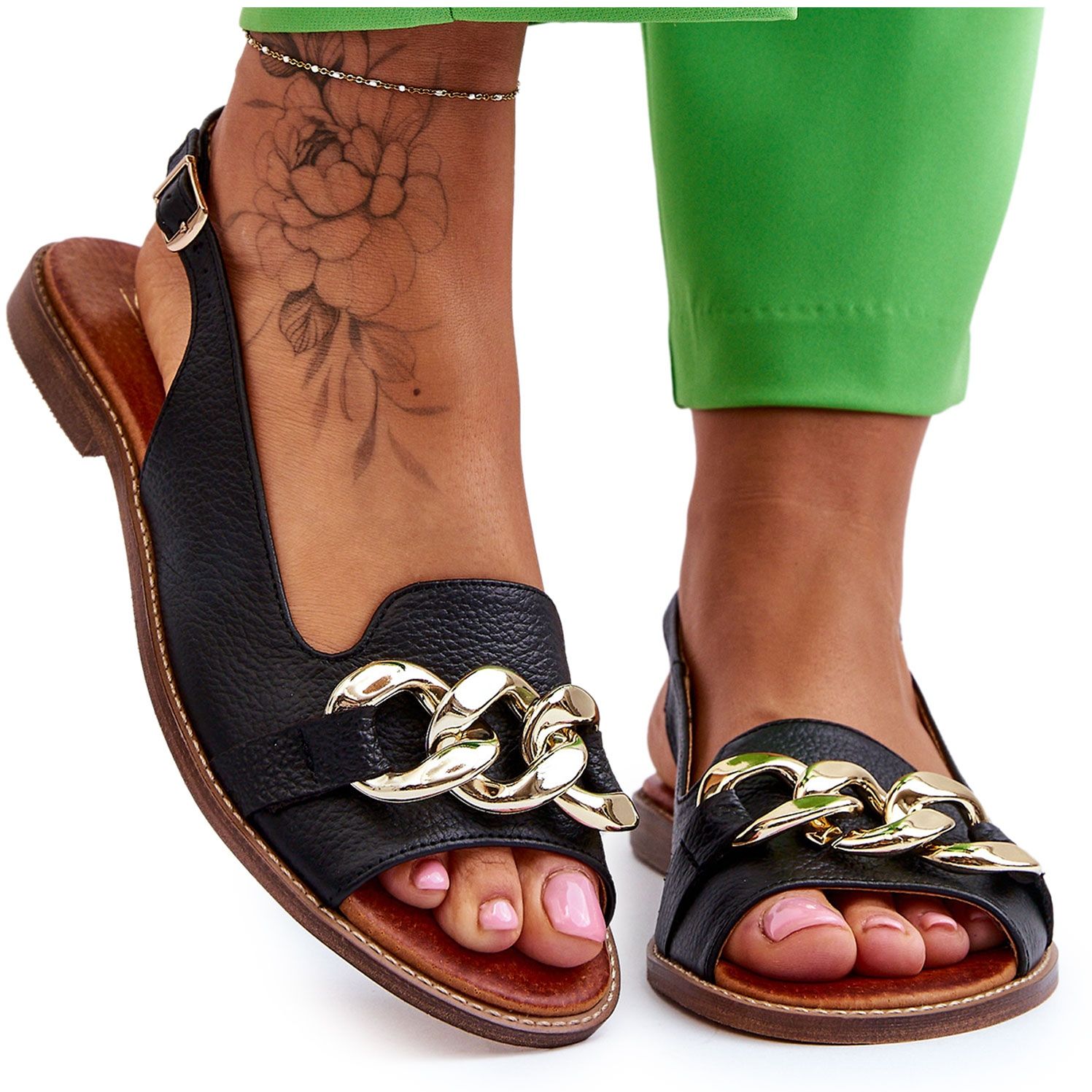 Détails: Sandales en cuir pour femmes Lewski Shoes 3230 Black Peas le noir
