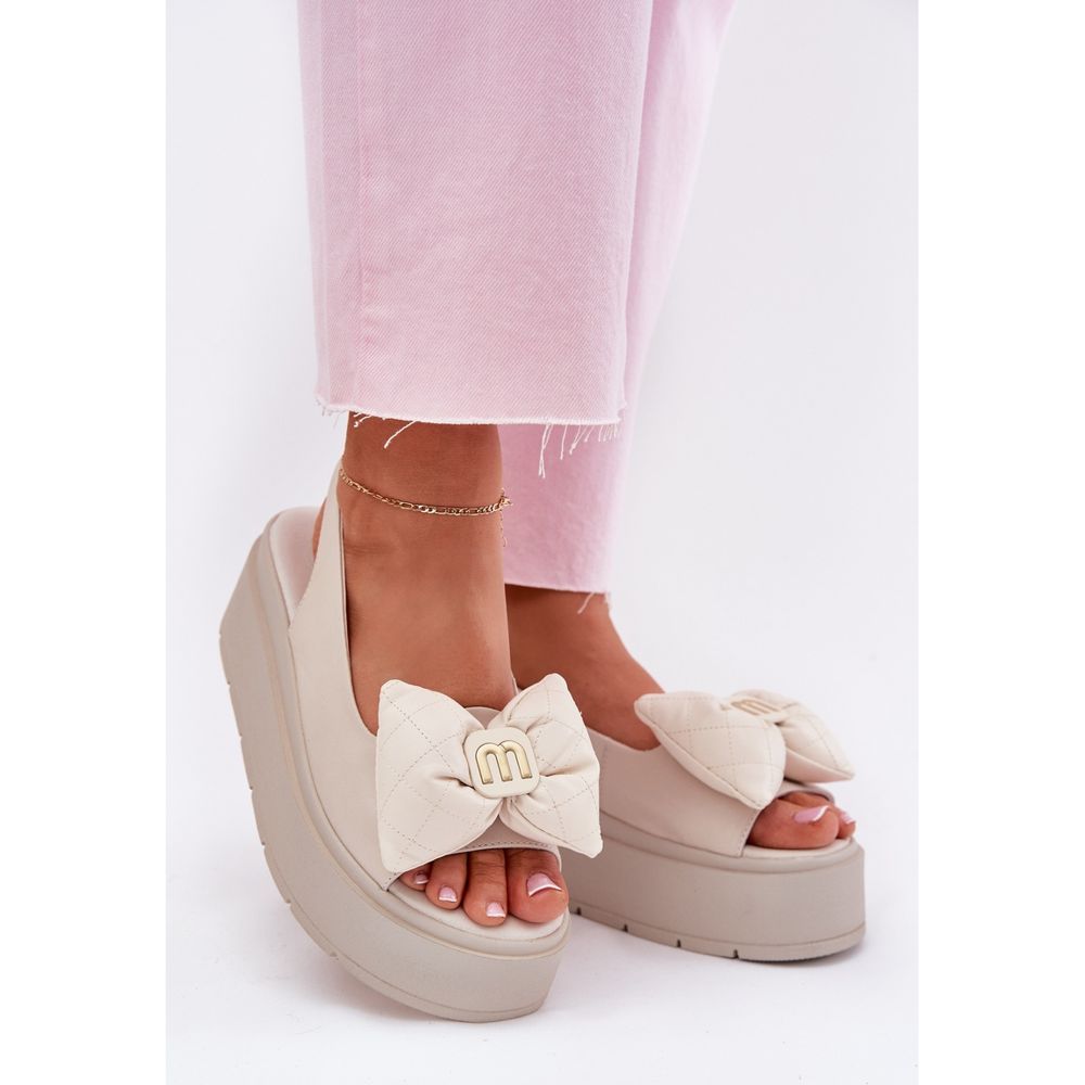 Une plate-forme massive d'une hauteur de 5,5 cm garantit non seulement le confort de l'usure, mais ajoute également quelques centimètres à la figure, ce qui la rend plus mince. L'arc décoratif sur le devant des sandales introduit un accent subtil, mettant l'accent sur le charme féminin. Grâce à l'insertion, les mettre et les retirer est un pur plaisir.