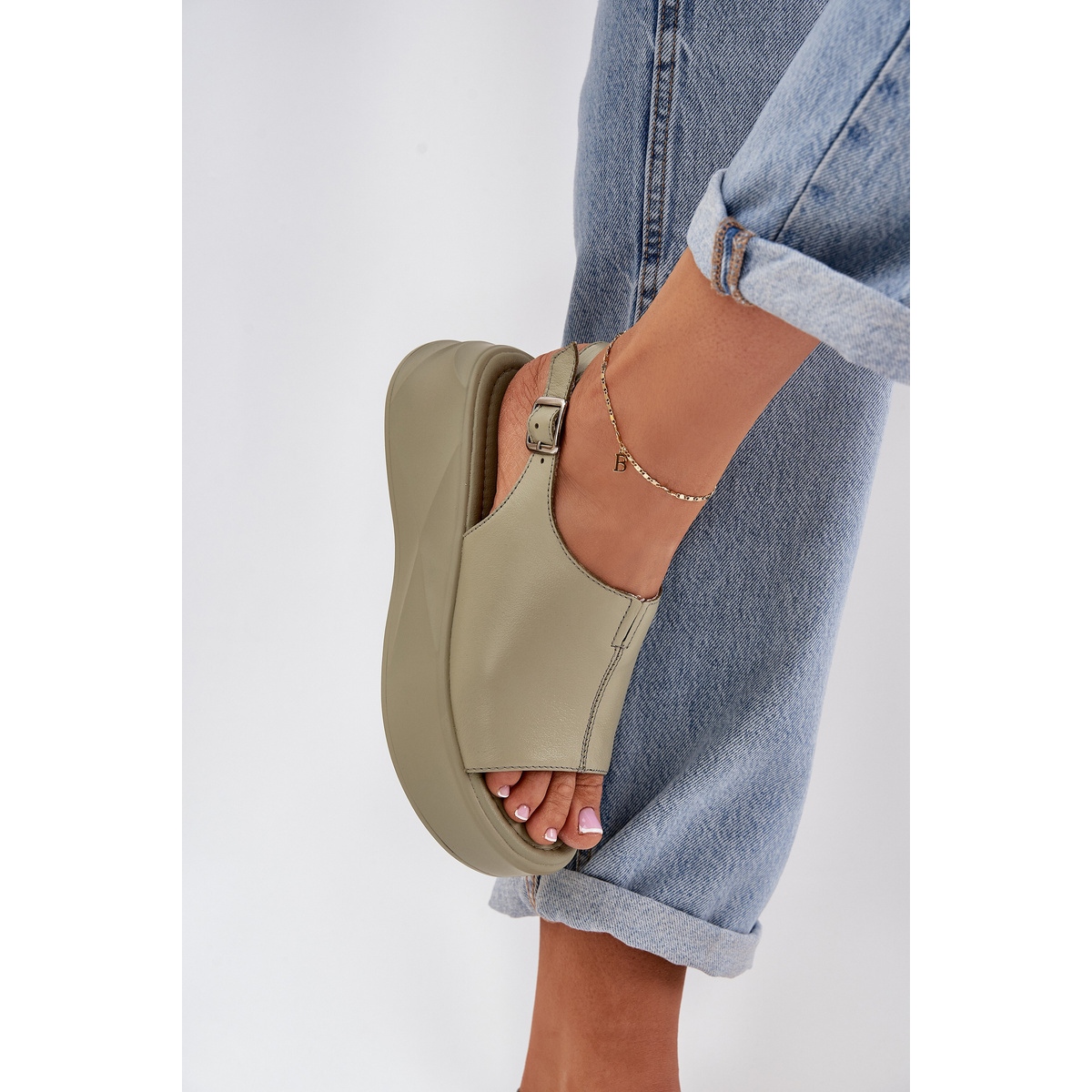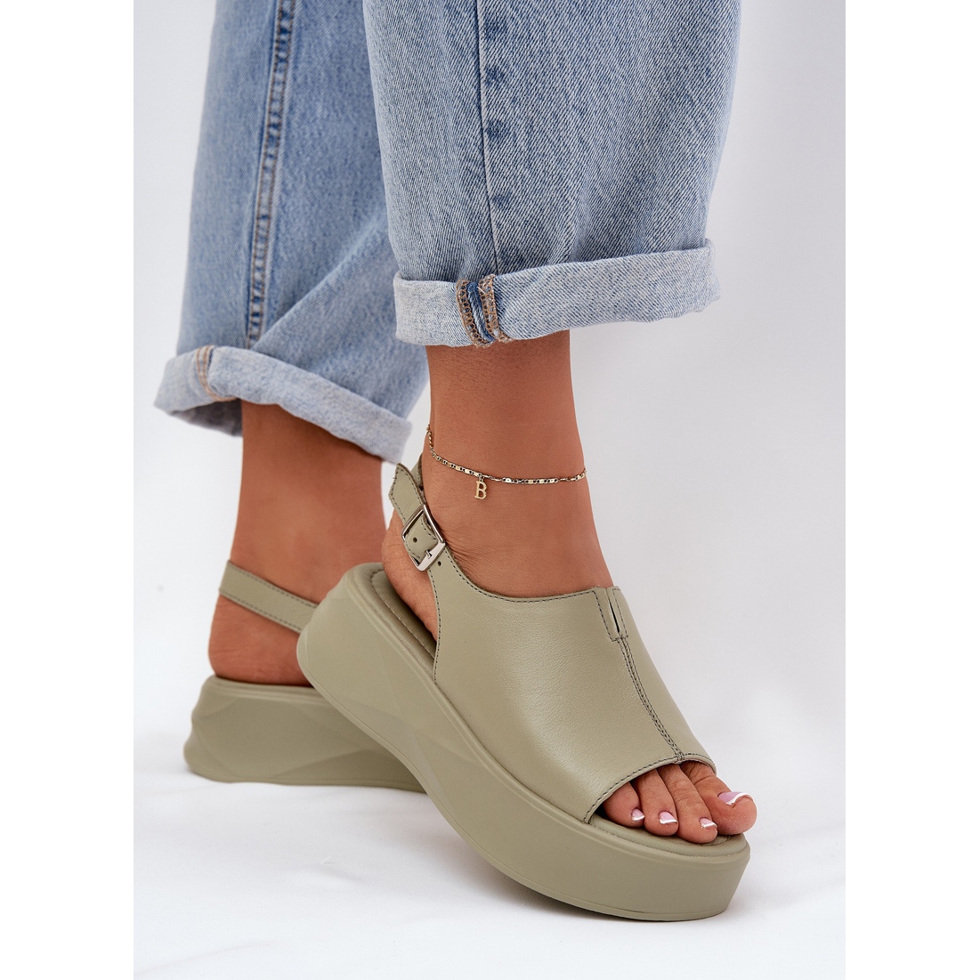 Détails: S.Barski Sandales en cuir pour femmes sur la plate-forme verte D&A SJ2301-2