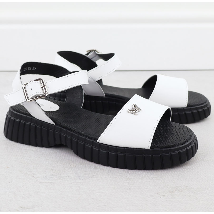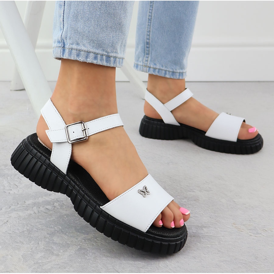 Les sandales sont disponibles dans une couleur blanche classique, ce qui en fait un ajout universel à chaque stylisation d'été. Un avantage supplémentaire est un charmant papillon, qui leur donne l'originalité et les fait se démarquer des autres modèles. Ce modèle a une attache de boucle, qui vous permet de s'adapter facilement au pied.