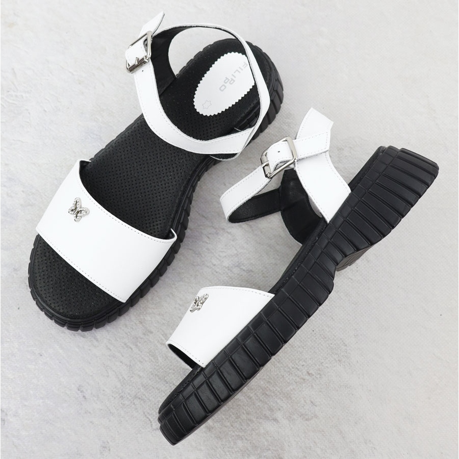Détails: Sandales en cuir pour femmes sur une semelle épaisse avec un papillon blanc Filippo DS6811 blanche