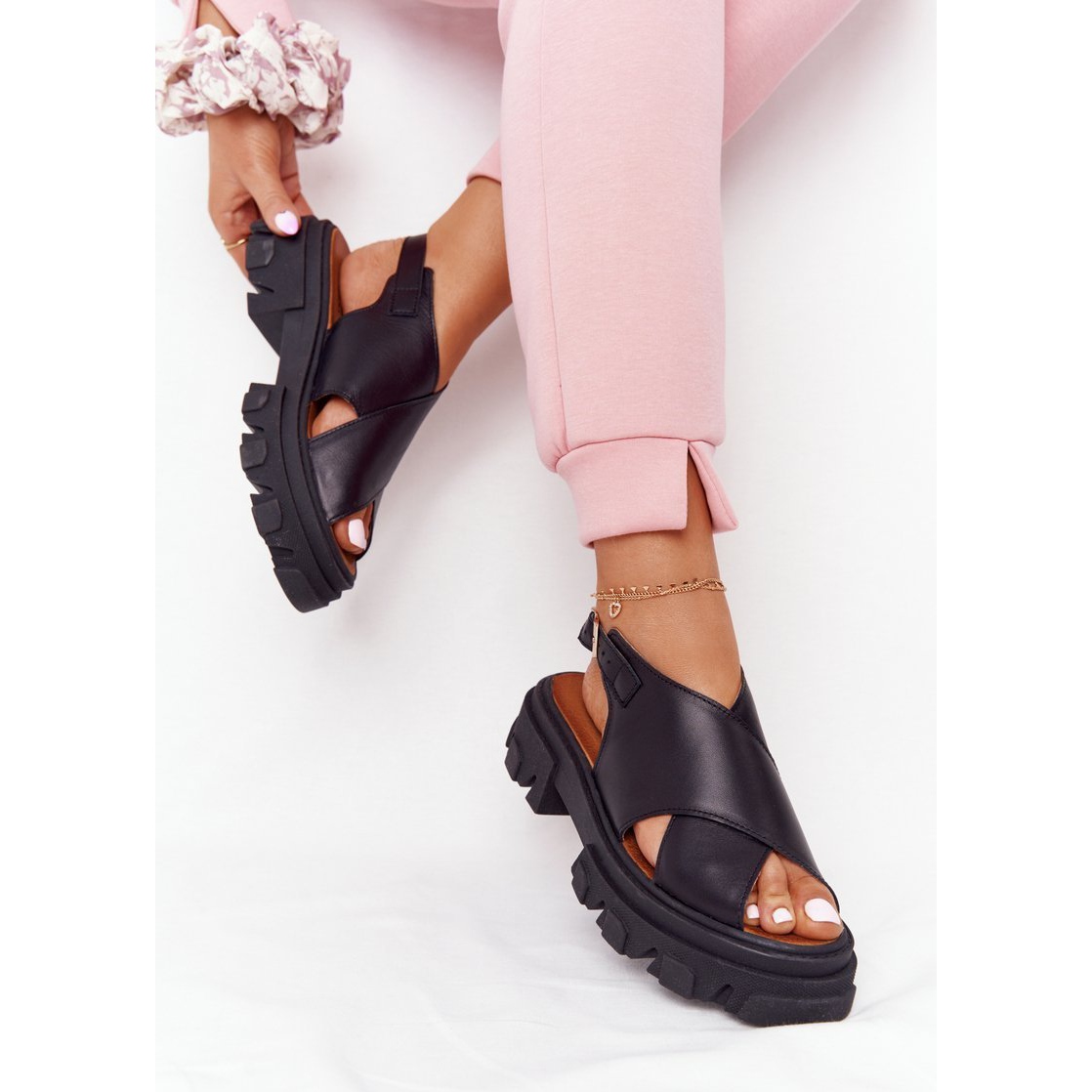Lewski Shoes Lewski Shoes Sandales En Cuir Sur La Plateforme Lewski Chaussures 3018-0 Noir le noir