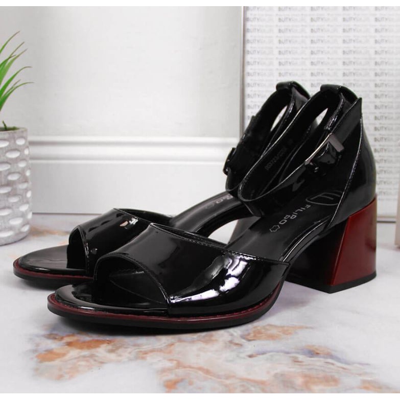 Détails: Sandales en cuir sur le poteau verni Filippo W PAW351 noir le noir
