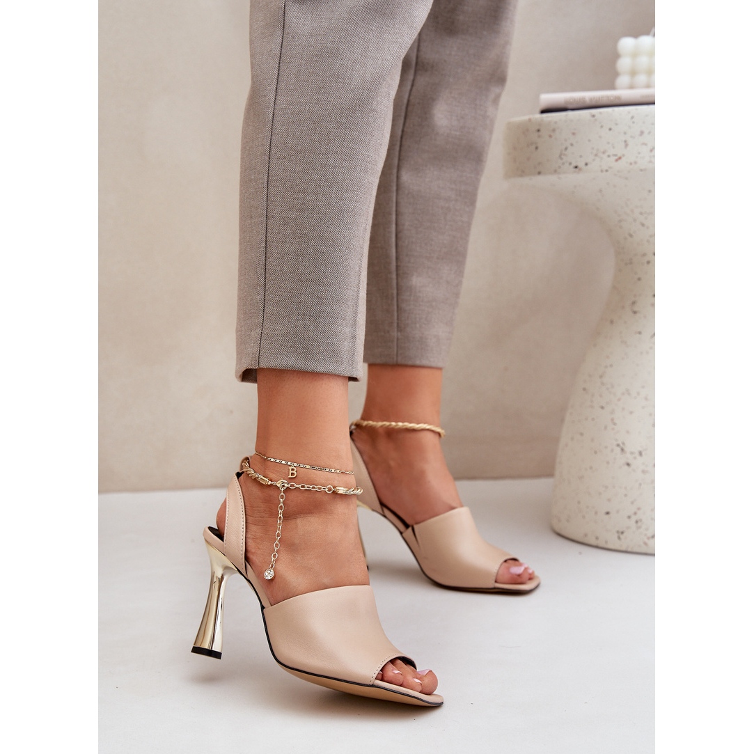 Détails: Sandales en cuir sur un talon haut avec un bracelet beige décoratif Chebello 4440