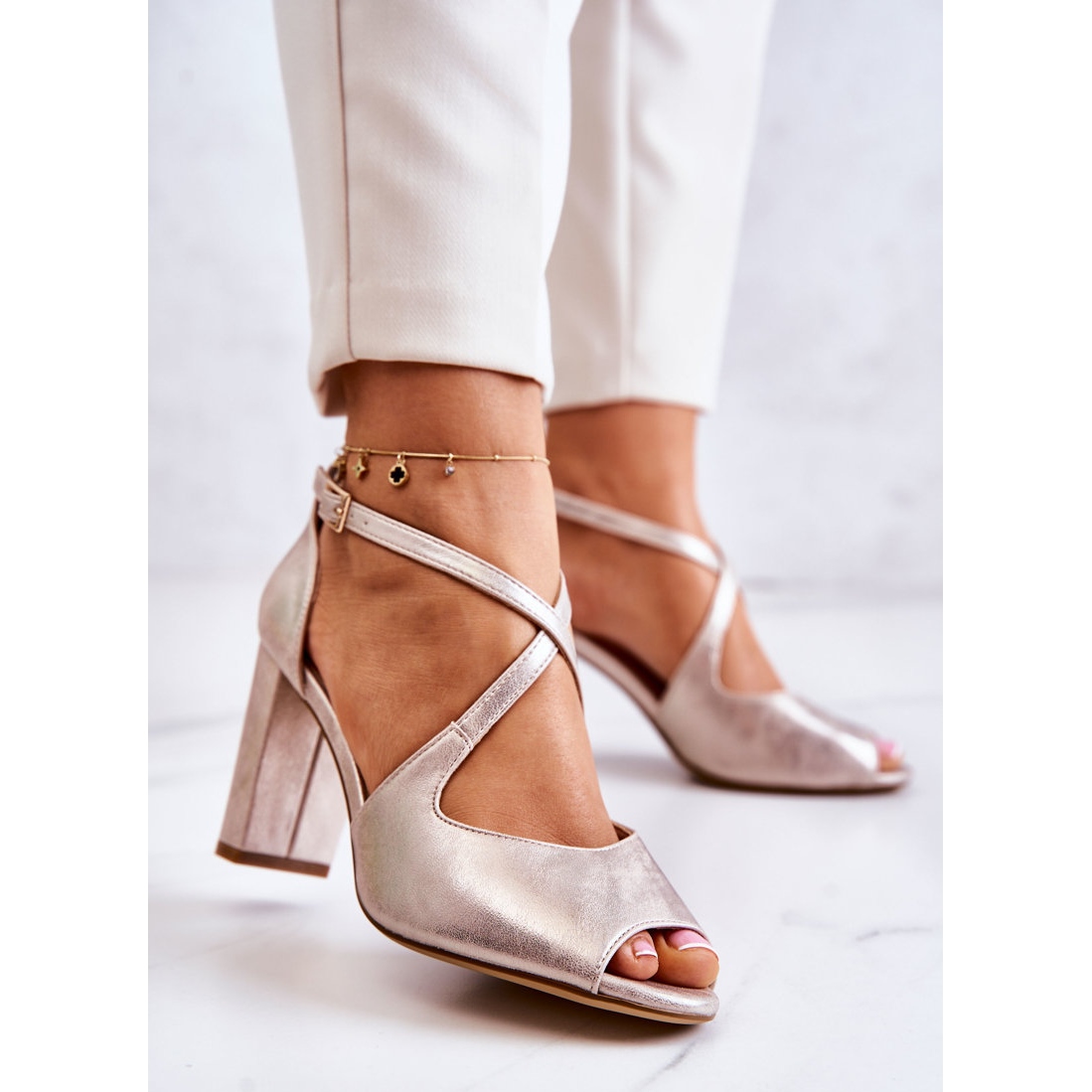 - Modèle: Sandales en cuir sur un talon haut