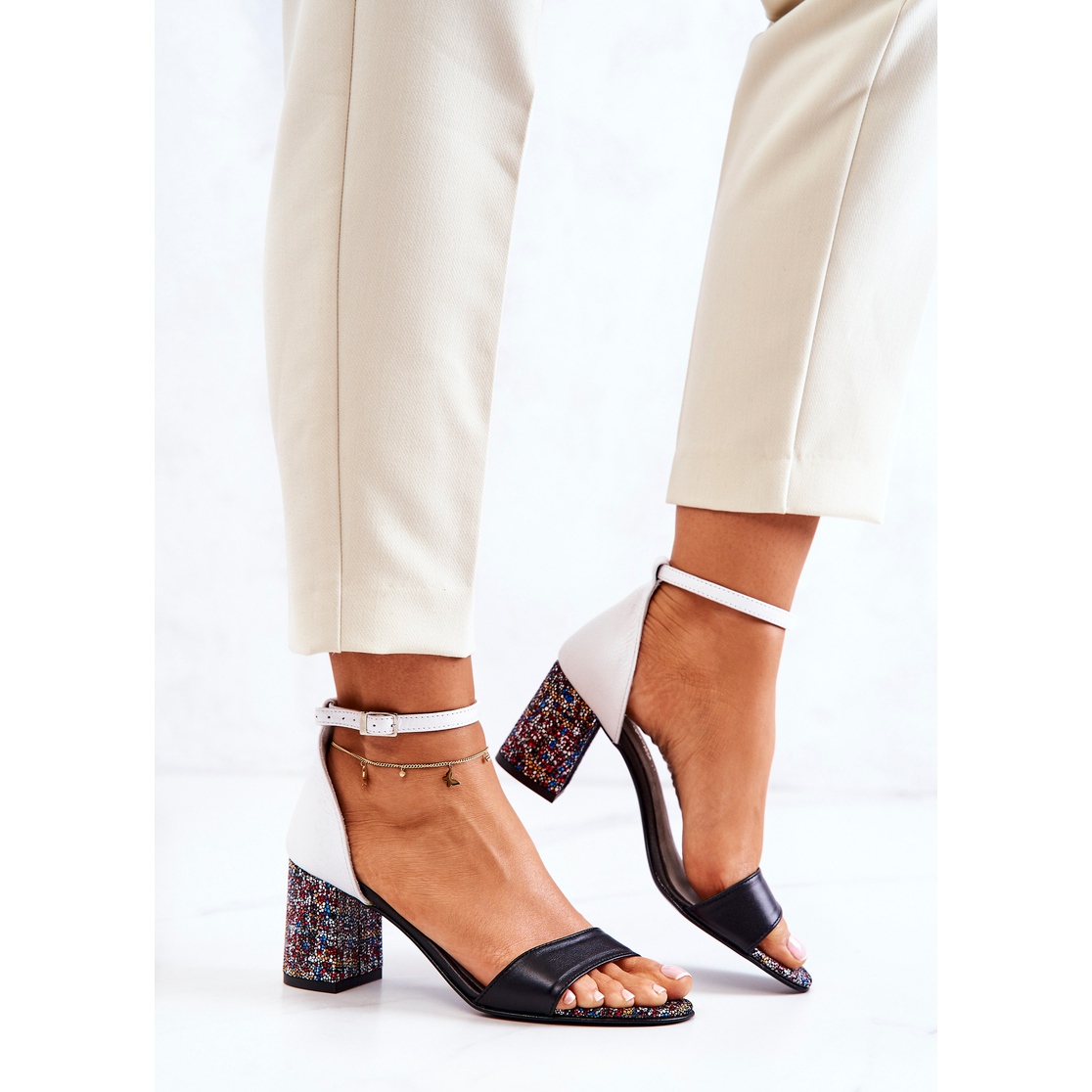 Détails: PA2 Sandales en cuir sur une barre Lorene noire et blanche le noir multicolore