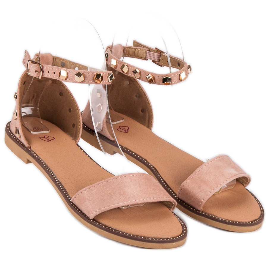 Fashion Fashion Sandales en daim à clous rose