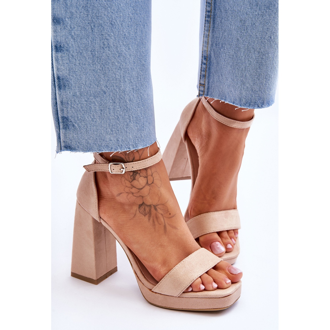 Détails: Sandales en daim à la mode avec un talon carré en merila beige