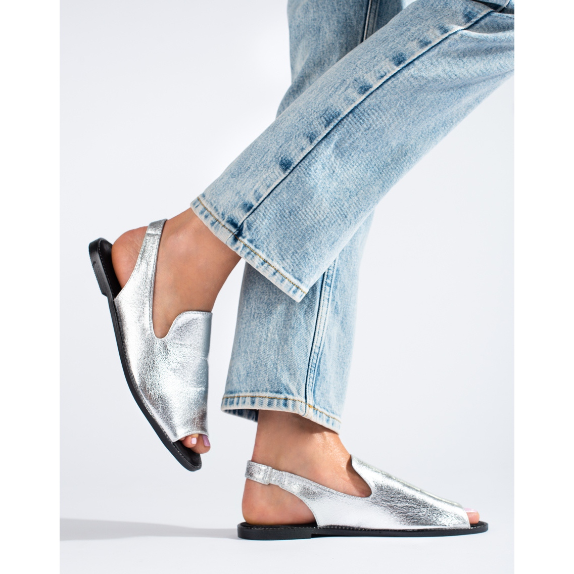 Le matériau extérieur est une imitation de daim de couleur argent à la mode, qui attire sans aucun doute l'attention et ajoutera de la brillance à n'importe quel style. L'intérieur des sandales est doublé de simili cuir, ce qui assure un confort à vos pieds même lors d'un port prolongé. La semelle intérieure en cuir écologique augmente en outre le confort d'utilisation.
