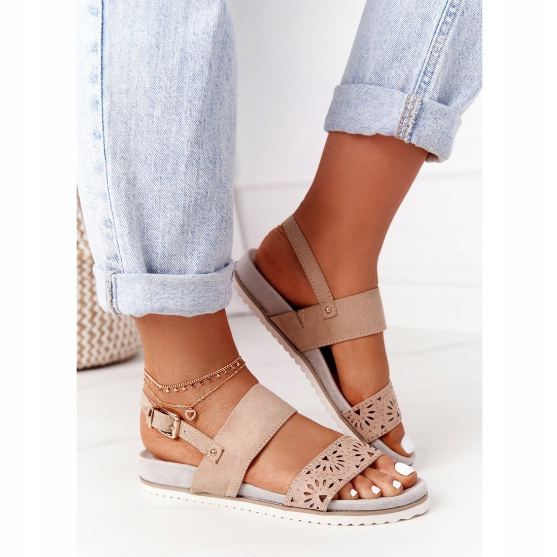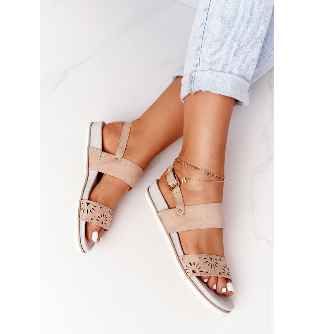 Les sandales ont une plateforme confortable de 3 cm de haut, ce qui les rend extrêmement confortables à porter toute la journée. La fermeture à boucle permet un enfilage facile et un ajustement aux besoins individuels. De plus, des strass délicats leur donnent une touche subtile et tendance.