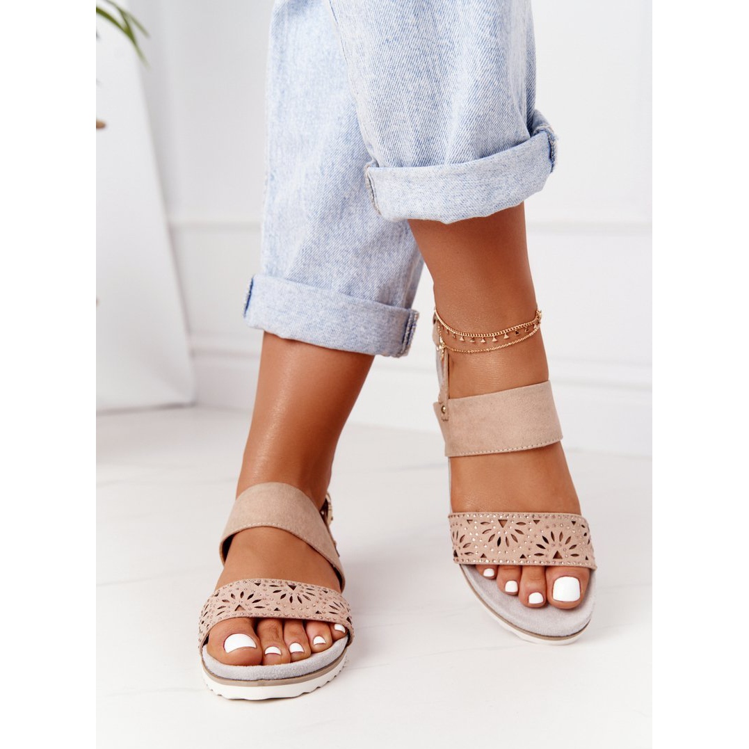 Détails: PE1 Sandales En Daim Avec Oxyde De Zirconium Beige Cora