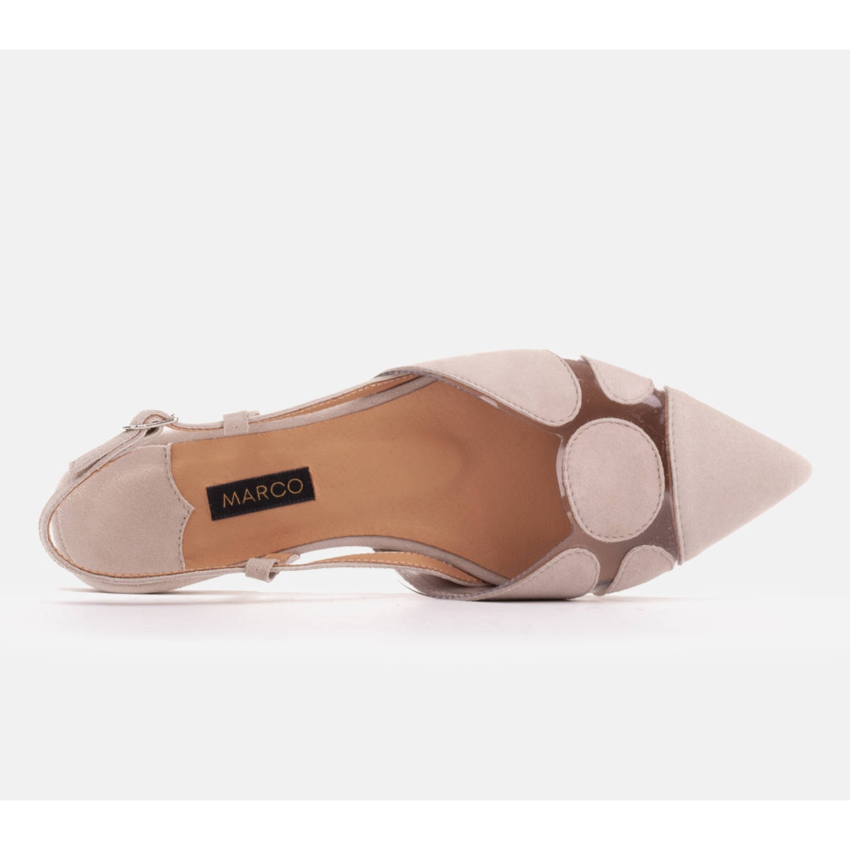 Détails: Marco Shoes Sandales en daim et matière transparente beige