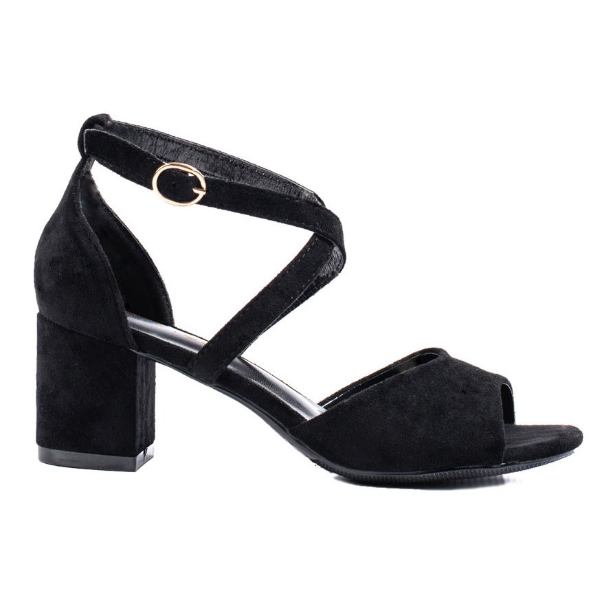 Ce sont d'élégantes sandales à talons hauts en daim du fabricant W. Potocki, qui sont le choix parfait pour les soirées de printemps et d'été. Ces chaussures élégantes de couleur noire classique s'accordent parfaitement avec une variété de tenues, ce qui en fait un complément parfait à n'importe quel style.