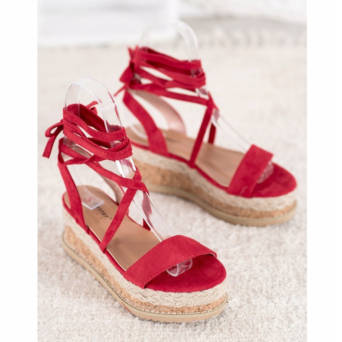 Ces élégantes espadrilles avec une plateforme de 4,5 cm seront parfaites pour les soirées, les fêtes ou les promenades quotidiennes en ville. Le rouge est une couleur indémodable et grâce à leur coupe classique, les sandales conserveront leur charme pendant de nombreuses saisons.