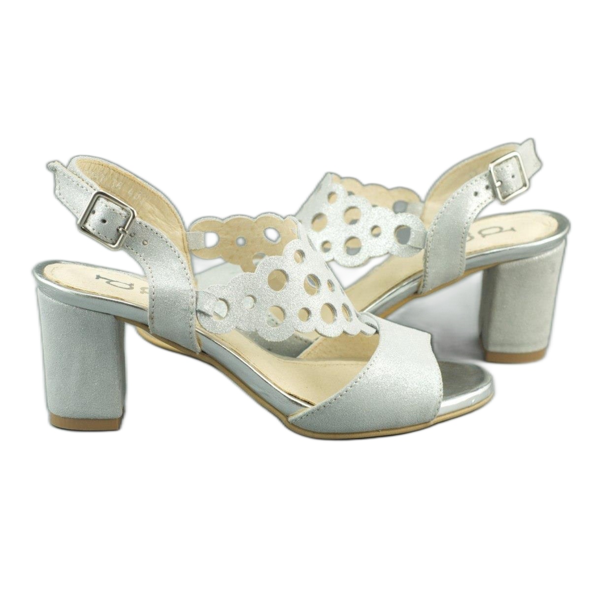 Un talon confortable de 7 cm assure la stabilité tout en ayant un effet positif sur la silhouette. Le design ajouré et la combinaison des couleurs blanc et argent confèrent aux sandales un caractère unique qui attire l'attention. Fabriqués en cuir naturel, tant à l'extérieur que dans l'insert, ils garantissent durabilité et confort d'utilisation.