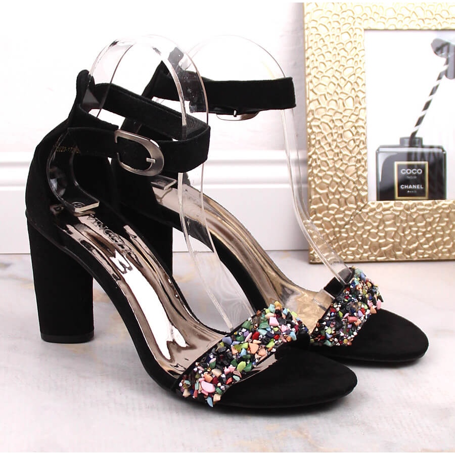 Détails: Sandales en daim pour femmes sur un poteau avec des perles noires Vinceza 17259 le noir