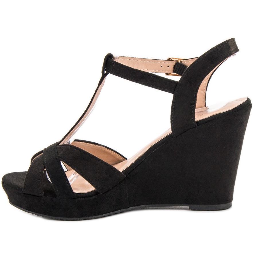 Les sandales en daim noir SHELOVET sont un incontournable de la garde-robe de toute femme élégante qui valorise la mode et le confort. Fabriquées en daim écologique de haute qualité, ces sandales noires s'adaptent parfaitement aux tendances de la saison printemps/été. Une cale stable de 10 cm de haut ajoute non seulement du style, mais assure également un confort de port au quotidien et pour les sorties en soirée.
