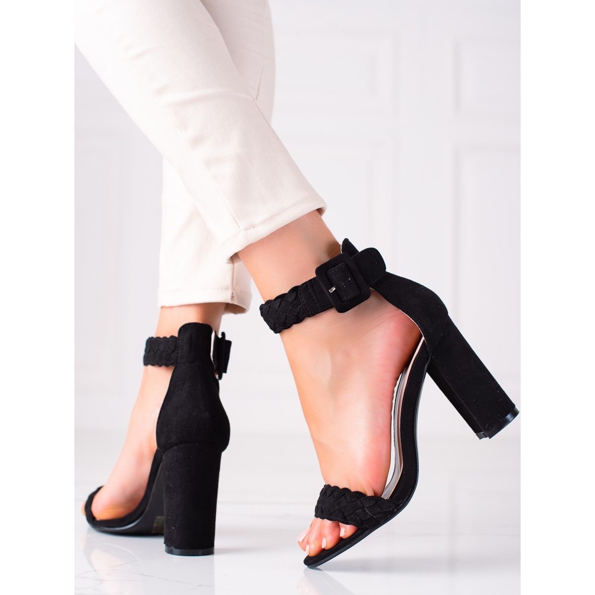 Les sandales sont fabriquées en imitation daim de haute qualité, ce qui garantit non seulement une apparence attrayante, mais aussi un confort de port. Le talon intégré et le bout ouvert ajoutent légèreté et sophistication. De plus, le talon haut de 10 cm assure un look attrayant et affine la silhouette.